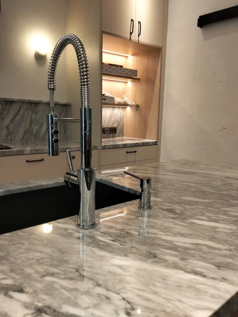 Quadra, sebagai material sintered stone (batu sinter) premium, menawarkan berbagai keunggulan signifikan dibandingkan granit dan material permukaan lainnya, menjadikannya pilihan yang populer untuk meja dapur, wastafel, lantai, dan dinding. Keunggulan utamanya berasal dari proses produksi berteknologi tinggi yang meniru pembentukan batu alam